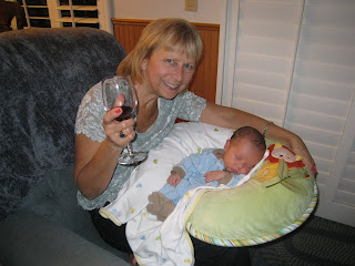 I definitely underestimated the whole sleep deprivation thing that comes along with a newborn, so I am eternally grateful that we are getting to stay with Mimi and Grandpa this first month... mom and I have gotten the whole tag team routine down... yesterday afternoon was an example of a perfect session where I hand him off to her after feeding him so I can go pump while she burps, changes, and cuddles him - then, after I'm finished and she's rocked him back to sleep, we enjoy a glass of wine together in the quiet early evening...a happy hour, indeed!